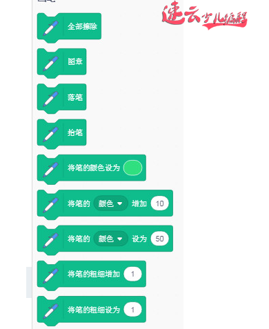 画笔工具里虽然只有9块积木,但是结合上运动、事件、控制、侦测也可以做很多内容!下面大家跟着老师一起来看一下呗! 一、画圆、三角形、正方形、五边形