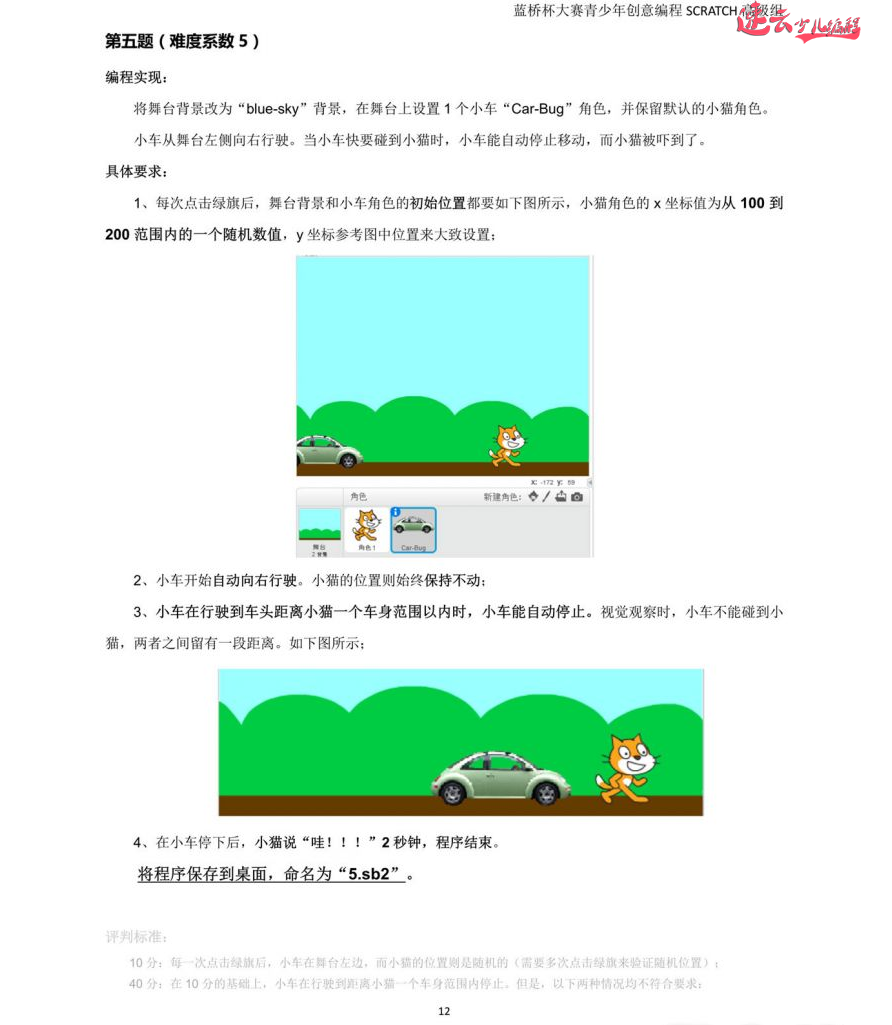 这是第十届蓝桥杯scratch的第五道编程题,我将它命名为“自动停车” 解析: 小车:
