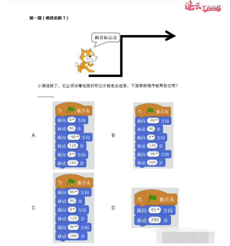 今天我们来看一下少儿编程scratch蓝桥杯选择题的真题: 这道题主要考查运动指令,难度一颗星 根据题意,我们